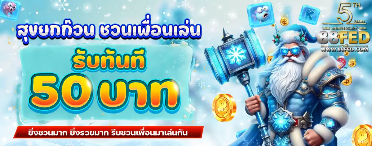 👉 เพื่อนสมัครยืนยันตัวตน ฝากครั้งแรก ฝากบิล 100 บาทขึ้นไปเท่านั้น ผู้แนะนำจึงได้รับฟรี 50 บาท