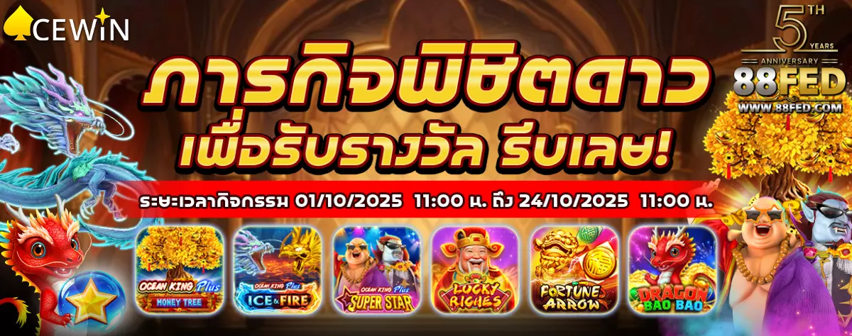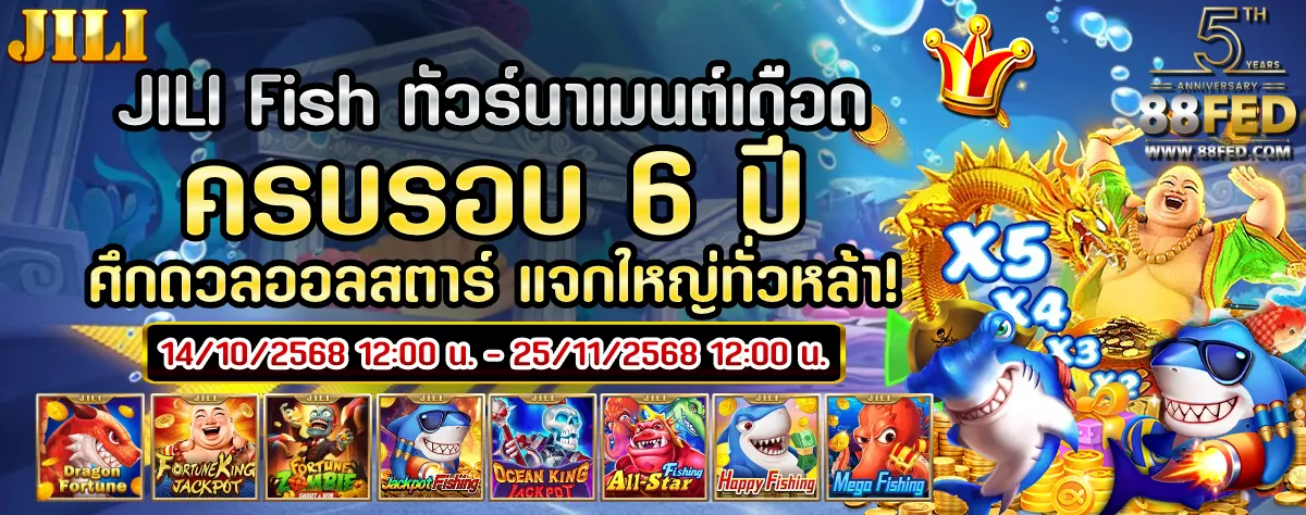 🎰เกมที่เข้าร่วม : Dragon Fortune, Fortune King Jackpot, Fortune Zombie, Jackpot Fishing, Ocean King Jackpot, All-Star Fishing,Happy Fishing, Mega Fishing